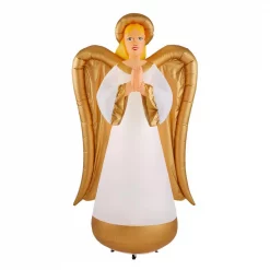 Bring holiday happiness to passersby with this Airblown Inflatable Luxe Angel. Decked out with festive gold metallic accents, this beautiful decoration is perfect for sharing Christmas cheer. Use it as a standalone piece or group it with other inflatables for a supersized scene. Setup is easy – just plug it in, stake it down and enjoy the fun. Includes everything needed for outdoor setup.