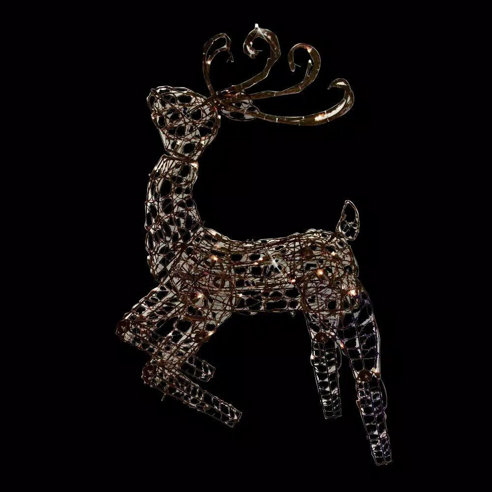 This Multi Posing Brown Grapevine Deer is a unique perspective on a holiday classic. It glows with its 105 warm white incandescent lights and stands at 48 in. tall. It can pose in over 30 positions, with that and its unique design its sure to stand out amongst the rest. It also comes with a 60 in. lead wire and is UL approved.