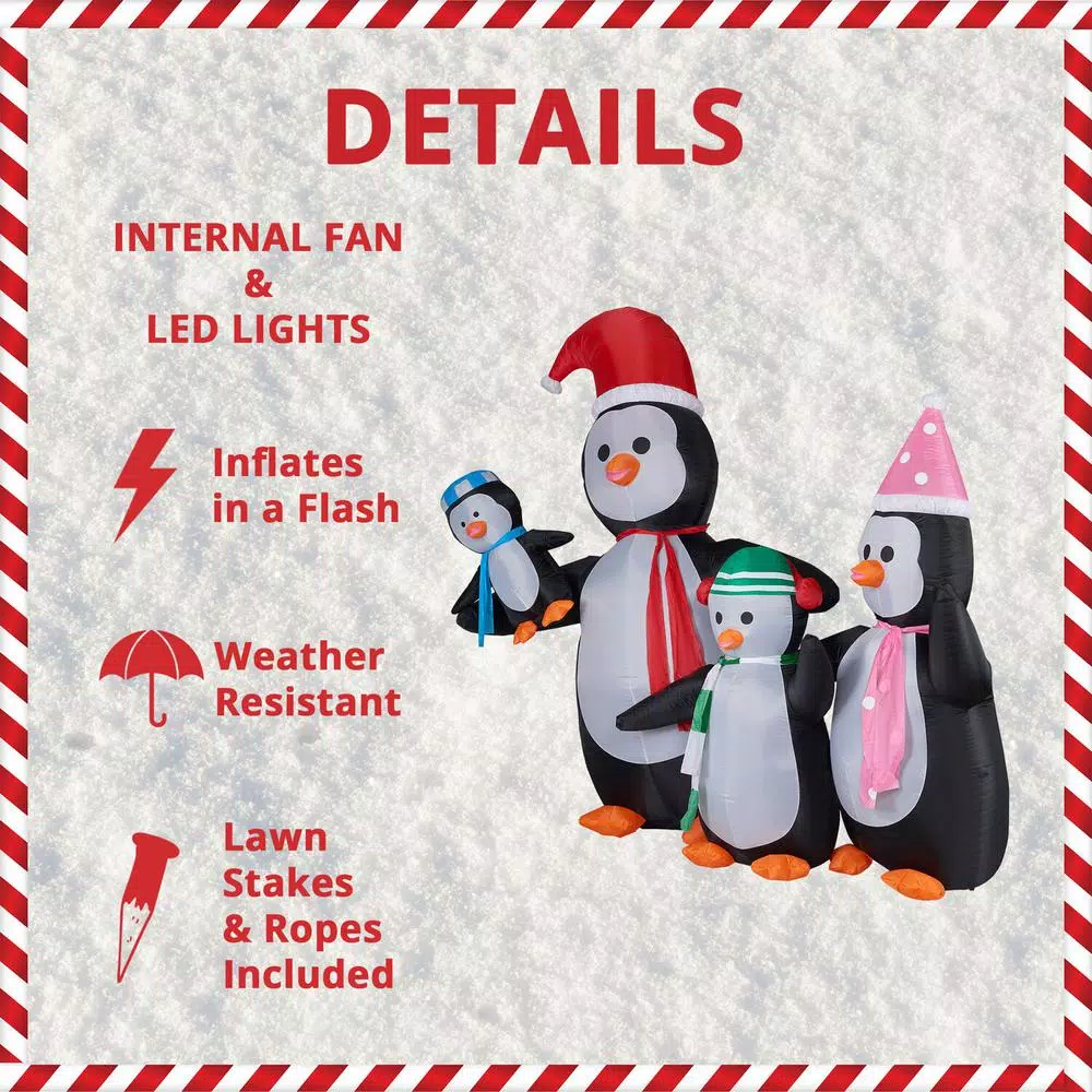 Celebrate Christmas in a big way this-year with prelit jumbo inflatables by Fraser Hill Farm. Choose from our large assortment of festive airblown inflatables to create an unforgettable holiday scene. Brighten your lawn, garden, backyard, open porch, or deck with this adorable Penguin Family. Inflate the magic of your seasonal light show, party display, or family celebration with this eye-catching decoration, certain to give your friends and family a warm welcome. You won’t need to give directions. With this blow-up inflatable, your guests will easily find your home. Setup is quick and easy. Plus, everything you need is included in your package – air blower, ropes, stakes and storage bag. Unpack it, plug it in, stake it down, then enjoy as the fun unfolds. For unique props to celebrate the Holidays, count on quality products from Fraser Hill Farm.