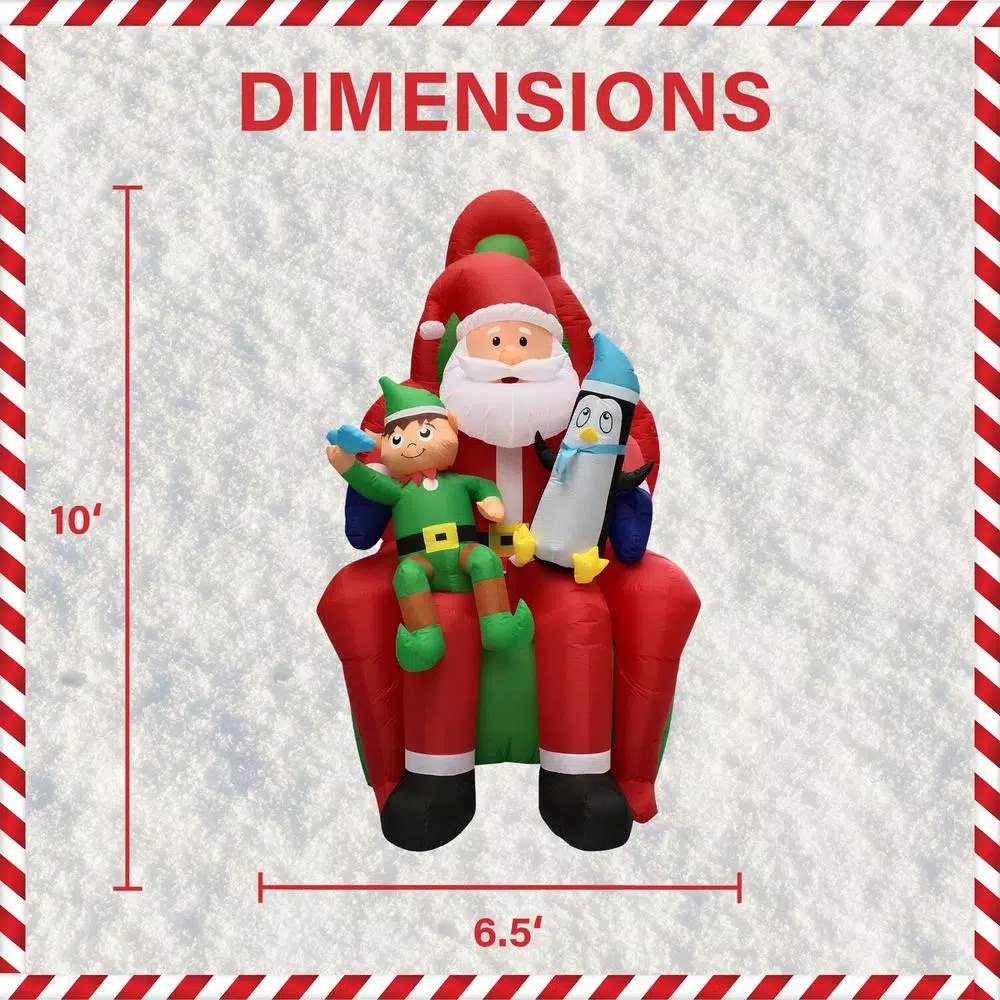 Celebrate Christmas in a big way this year with prelit jumbo inflatables by Fraser Hill Farm. Choose from our large assortment of festive airblown inflatables to create an unforgettable holiday scene. Let’s visit Santa. Brighten your lawn, garden, backyard, open porch, or deck with this cheerful Santa, Elf and Penguin sitting in his chair. Inflate the magic of your seasonal light show, party display, or family celebration with this eye-catching decoration, certain to give your friends and family a warm welcome. You won’t need to give directions. With this blow-up inflatable, your guests will easily find your home. Setup is quick and easy. Plus, everything you need is included in your package – air blower, ropes and stakes. Unpack it, plug it in, stake it down, then enjoy as the fun unfolds. For unique props to celebrate the Holidays, count on quality products from Fraser Hill Farm.