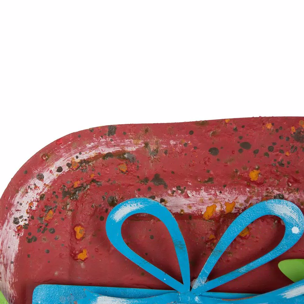Give your garden an eye-catching holiday accent with Red Truck Metal Garden Stake. Rustic details on the truck while a sign reading Merry Christmas is placed on the boot, which is hauling a bed full of Christmas gifts and tree. Stick it in the ground using the metal stakes and create a holiday-themed garden that pops with holiday touch and feel.