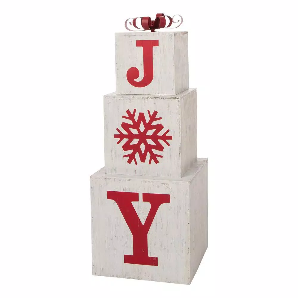 - J,O,Y are written on each box in red with a white backgrounds is sure to send a happy atmosphere for the festive season