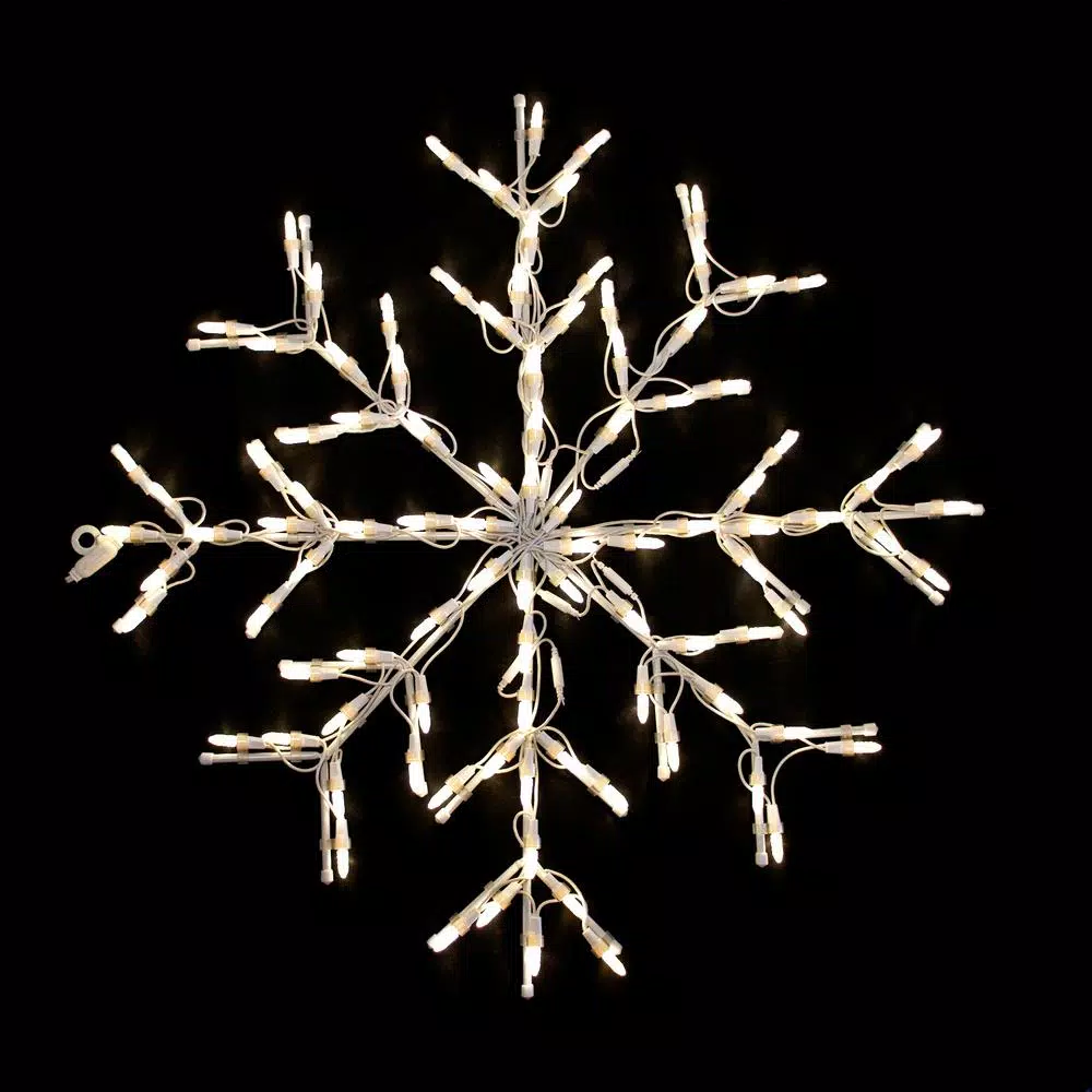 Lighted LED Snowflake for indoor and outdoor holiday decorating. A versatile and compact size, the lighted snowflake can be incorporated into many areas of your decor, including hanging in trees, perched on yard stakes or on walls. Sure to become a classic for years to come Commercial-grade lights on a steel frame, durable outside. Perfectly compliments all decor styles and types. Y-Stakes not included for ground installation. Must be purchased separately.