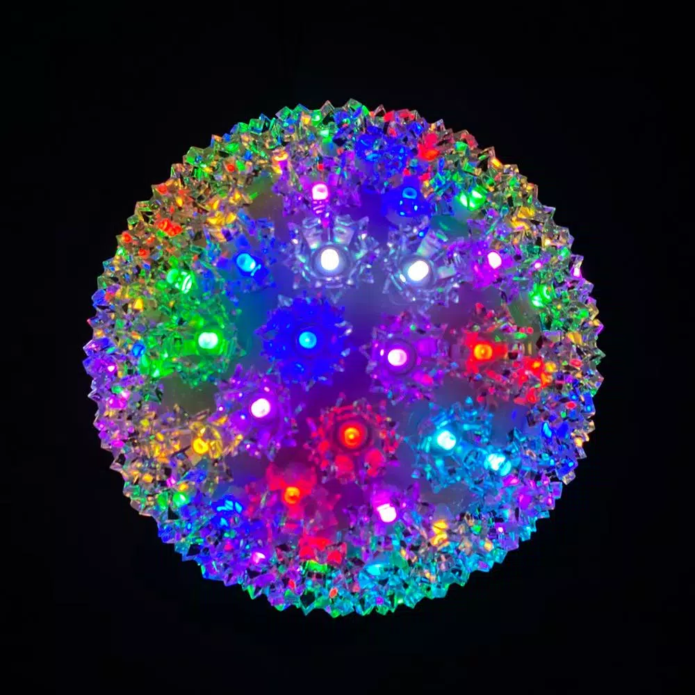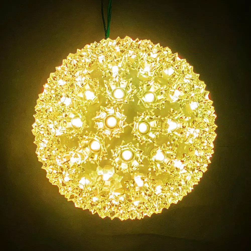 This sphere is what you’ve been waiting for. Full color control with a simple to use remote. No Apps, No Hassle. This set has all the functions and features you will need, with eye popping FX to boot. Frosted RGB 5 mm lights. Features: LED Low Voltage UL approved for indoor or outdoor application. Versatile design allows you to use alone or combined with other decor. Contains 100 Frosted RGB LED 5 mm lights Remote functions: Jump, Fade, Flash White, Chase, Steady, Flash Out, and Wave. RF Remote control range is roughly 50 ft.